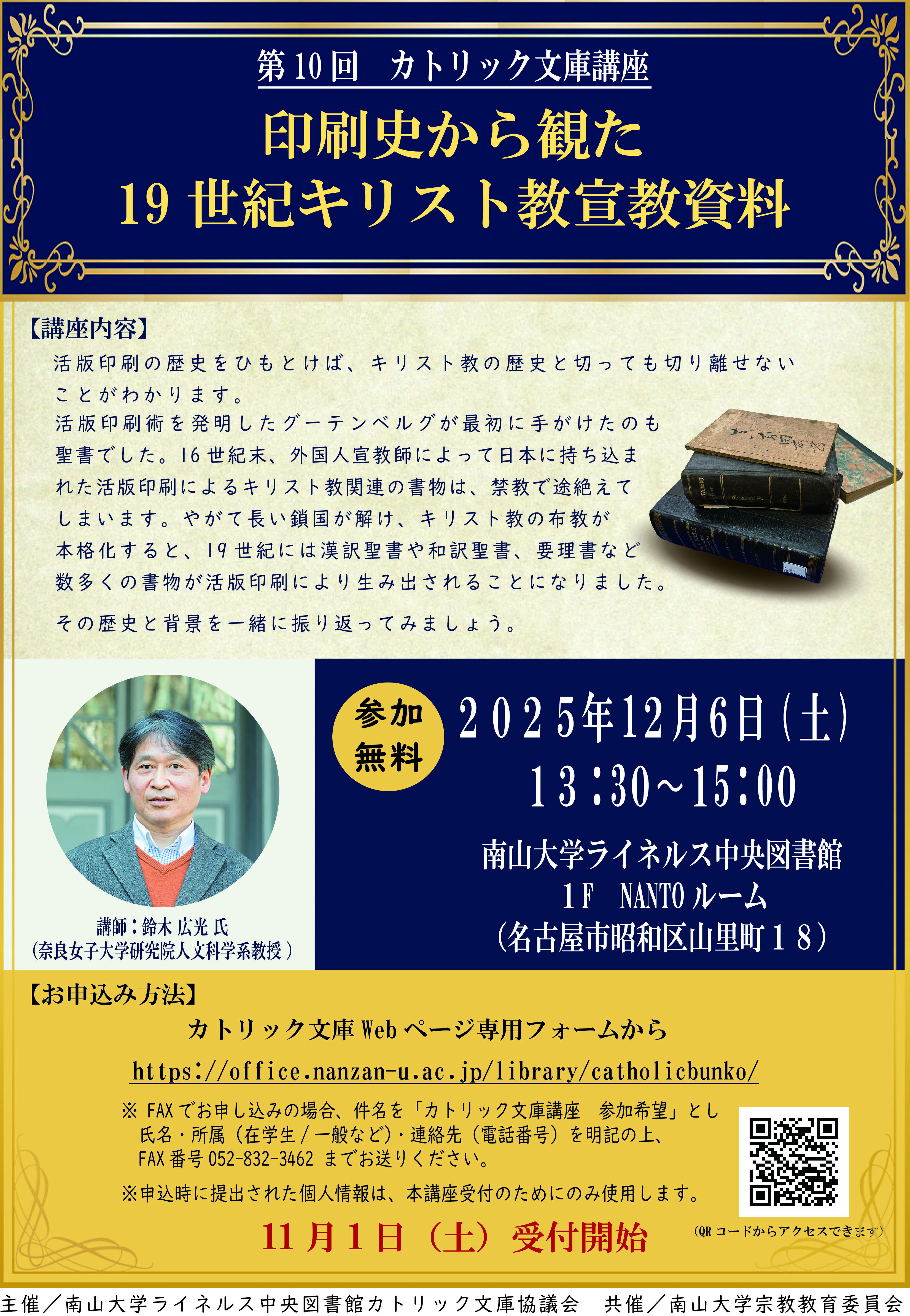 2025年12月6日( 土) 第10回カトリック文庫講座「印刷史から観た19 世紀キリスト教宣教資料」を開催します。
