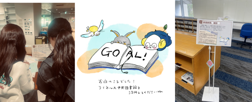 すべてのシールを集めてゴールした参加者には記念品として、図書館キャラクターが印刷されたかわいいルーズリーフを進呈し大好評でした。図書館では今後も様々なイベントを実施していきますので、是非みなさん積極的に参加してください!