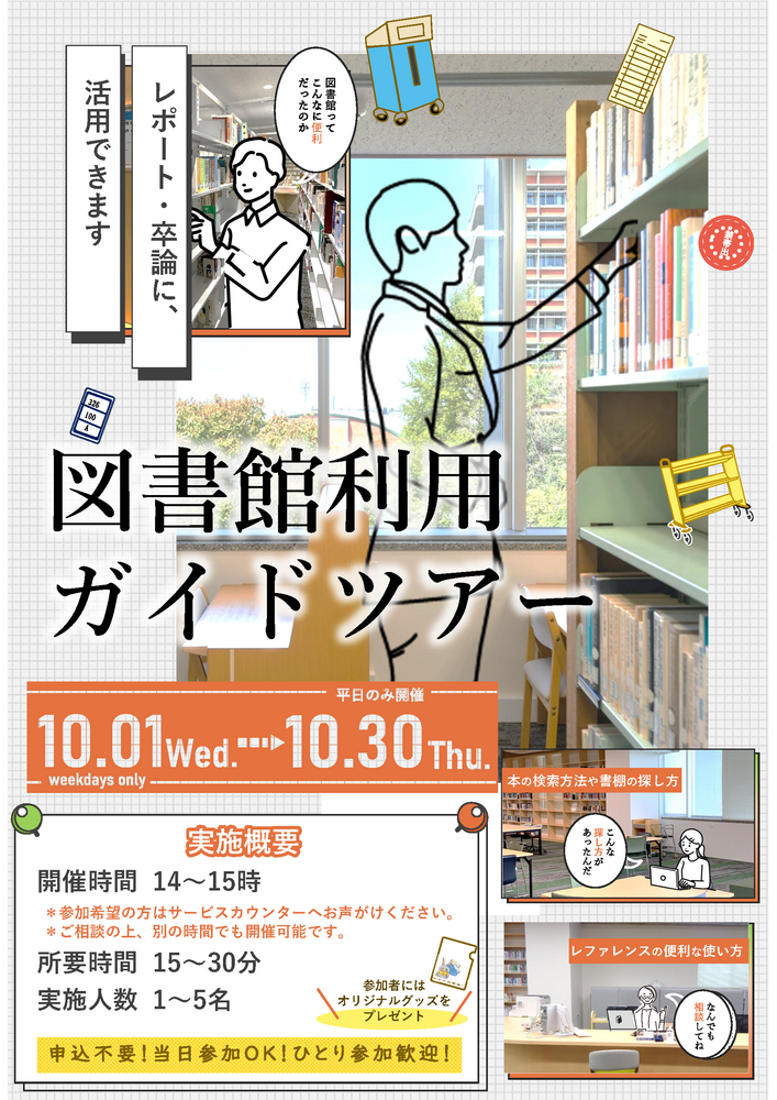 【お知らせ】図書館利用ガイドツアーの開催について(10/1~10/30)