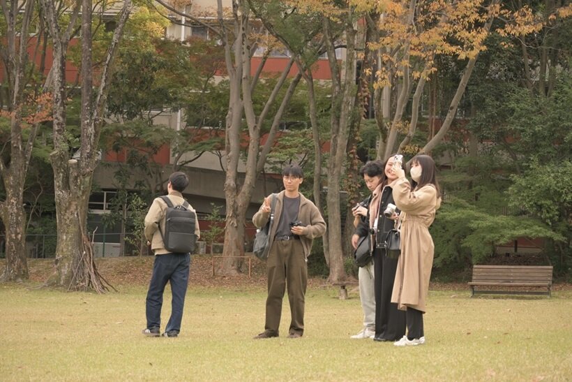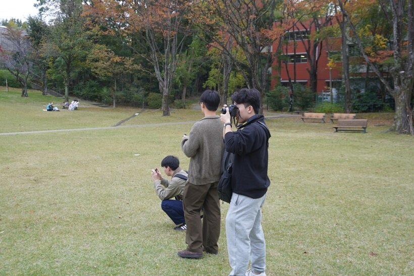 普段はジャパンプラザで交流を行っていますが、今回はジャパンプラザの外に出て、南山大学の景色を撮影しました。グリーンエリアや、S棟、メインストリートなどを歩き、紅葉を探しに行きました!自分のカメラや スマートフォンを持って、大学内で写真を撮影しました。