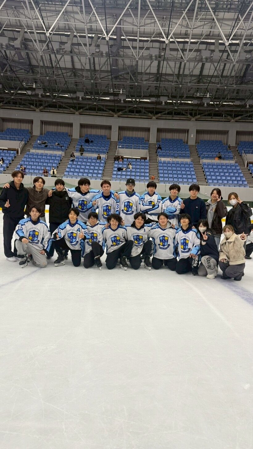 アイスホッケーは氷上の格闘技とも呼ばれるほど、激しくぶつかり合うこともあるスポーツです。颯爽と氷上を駆け抜ける姿は見る人を魅了します。アイスホッケー部は部員の9割が未経験者です。高校まで運動をしていなかった部員もいます。スタートラインが同じなので、努力した分だけ試合で活躍することが出来ます。また、週2,3回という限られた時間で、集中して練習をしている為、学業やアルバイトとの両立も可能で大学生活を充実したものに出来ます。大学で何か新しいことを始めたい人、熱中出来る事が欲しい人をアイスホッケー部は待っています。このような選手を支えるマネージャーも随時募集中です。興味を持っていただけた方はSNSアカウントへお気軽にご連絡をください。