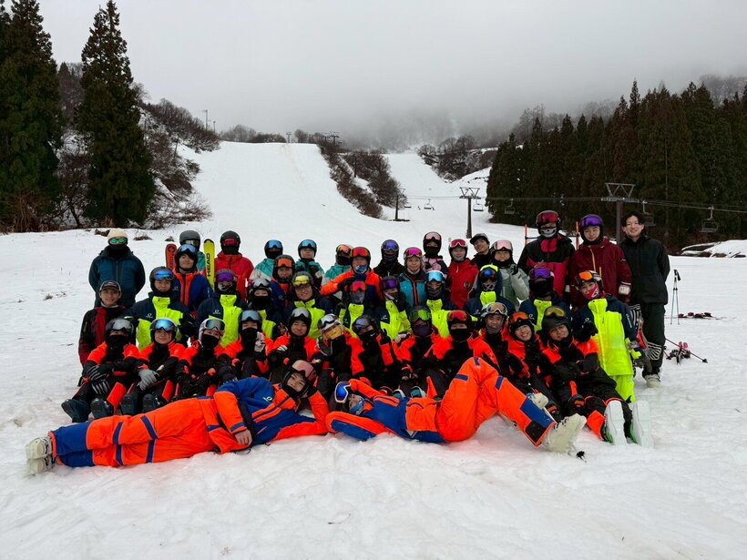 こんにちは、基礎スキー部GLACIER(グレイシア)です。私たちは基礎スキー(デモスキー)と呼ばれる競技をしています。オフシーズンは体育館や公園で体力づくりやローラースケートなどを活用したトレーニングをし、シーズン中は、長野県で合宿や居候をしながら東海大会優勝・バッジテスト合格を目指します。2025年度の東海学生大会では、女子、男子共に総合優勝を達成しました。女子はこれで8年連続の総合優勝です。